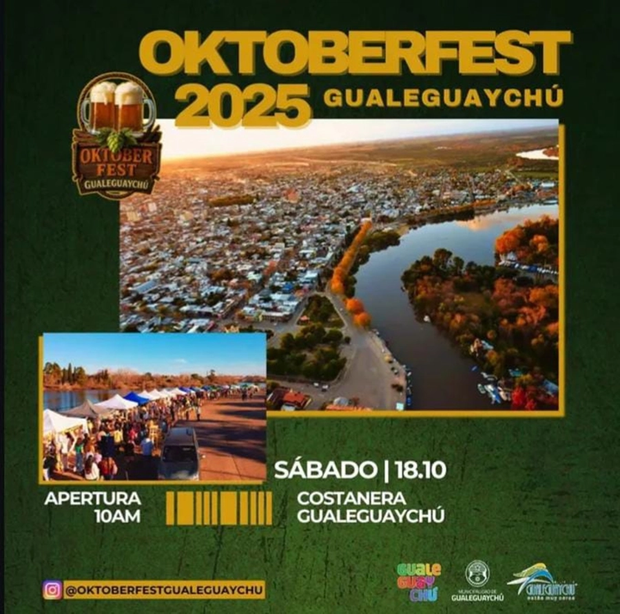 El fin de semana se presta para disfrutar de un evento al aire libre, con las mejores cervezas y la más variada gastronomía. Oktoberfest Gualeguaychú es un evento libre y gratuito para todo público, de autogestión en conjunto con el equipo de Espacio Cultural Vibra. Habrá una variada propuesta musical con bandas y Djs como Sir Blues, Tributo a Bob Marley, Frecuencia Stereo, Mama Dealer, Blueslevard, Gajos, Los soldados del litoral, Macarena Pérez, Francia 98, Las Flores de Maquiavelo y DJ Fer de Kingston. Sumate a compartir la birra más rica con buena música, amigos y familia.