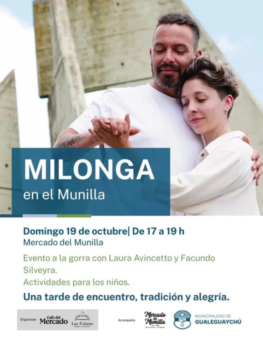 Las tardes más lindas se viven en el Mercado Munilla. Vení a disfrutar una tarde de encuentro, tradición y alegría al ritmo de la Milonga con dos profesores de lujo. Evento a la gorra con clases a cargo de Laura Avincetto y Facundo Silveyra.