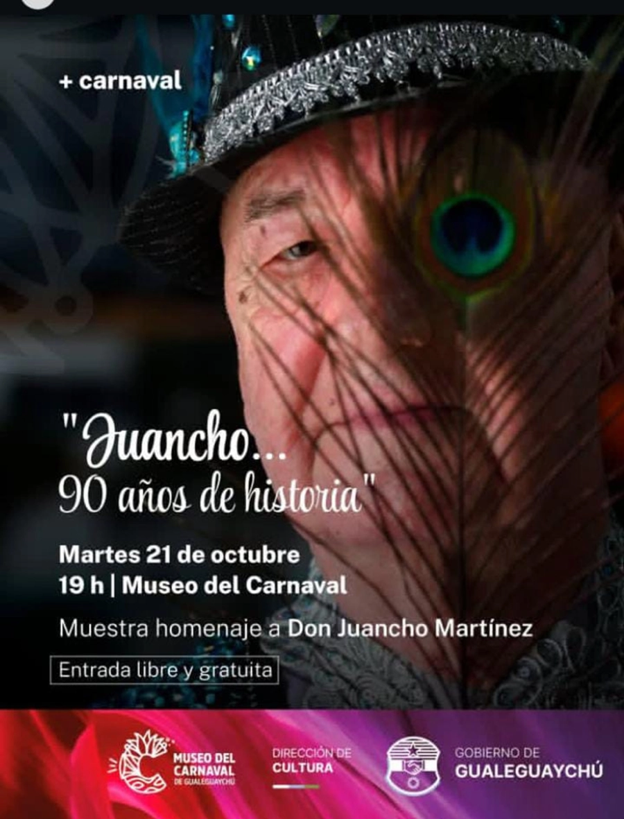 El Museo del Carnaval de Gualeguaychú rinde homenaje a Don Juancho Martínez, figura entrañable y referente de la cultura de Gualeguaychú y de la provincia de Entre Ríos. Con una vida dedicada al arte, al color y al Carnaval, el actor, transformista, director e impulsor incansable dejó su huella en cada circuito del Carnaval, convirtiéndose en símbolo de creatividad, libertad y pasión. Un reconocimiento merecido a quien con su arte, inspiró a incontables generaciones.