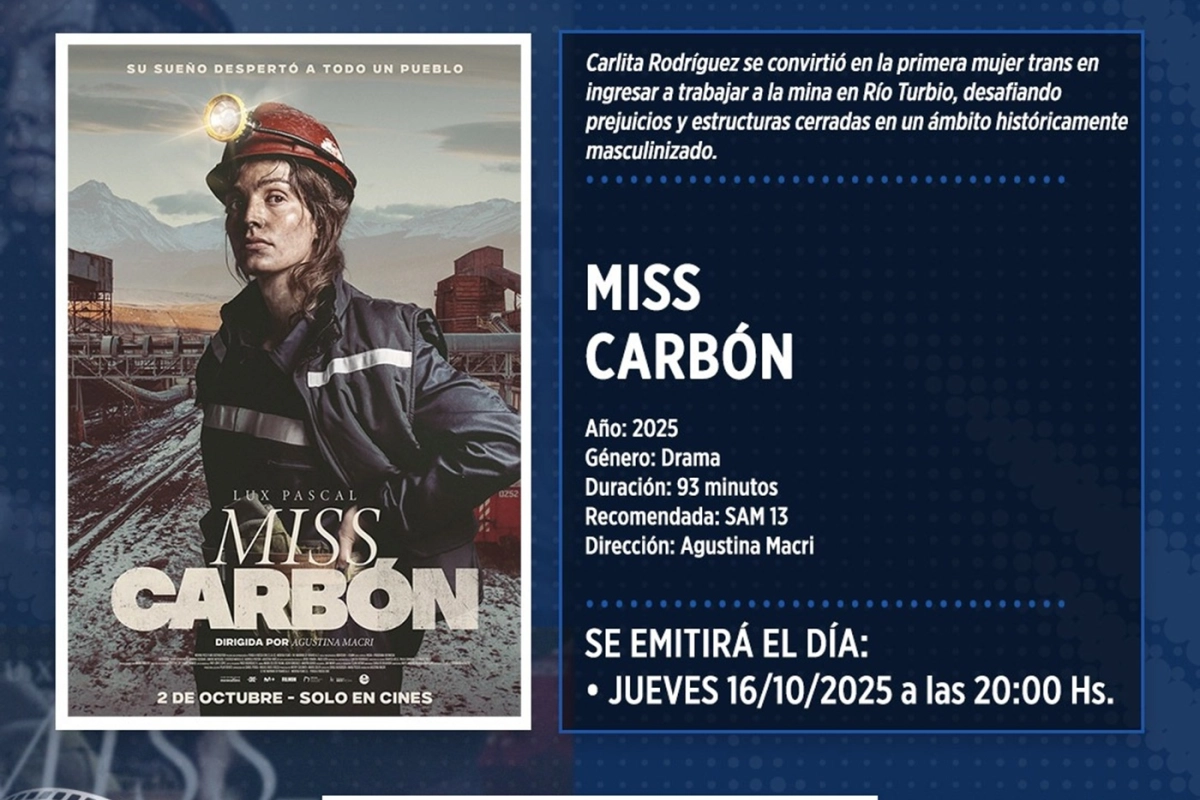 Con el estreno de "Miss carbón" (ficción basada en una historia real), Sonergia Espacio INCAA invita a comenzar la semana a puro cine. Carlita, una mujer trans, busca adentrarse en un mundo que históricamente ha prohibido a las mujeres ingresar en las minas. Para ello, tendrá que desafiar los prejuicios y las normas sociales. Carlita fue la primera minera de Río Turbio, en la Patagonia argentina, donde las mujeres tenían prohibido el acceso al trabajo en las minas, principal fuente de ingresos de la zona. «Hasta que Carlita, por su identidad trans, logró hackear al sistema machista y patriarcal de la mina y del pueblo», explica Agustina Macri, la directora, para quien esta es su segunda película como realizadora. En la piel de Carlita se mete la actriz chileno-estadounidense Lux Pascal, papel que supone su primer protagonista en un largometraje. Junto a ella, figuran en el reparto de Miss Carbón, entre otros, Federico Marzullo, Laura Grandinetti, Simone Mercado, Romina Escobar y Agostina Innella. Además, la película cuenta con la colaboración especial de Paco León.