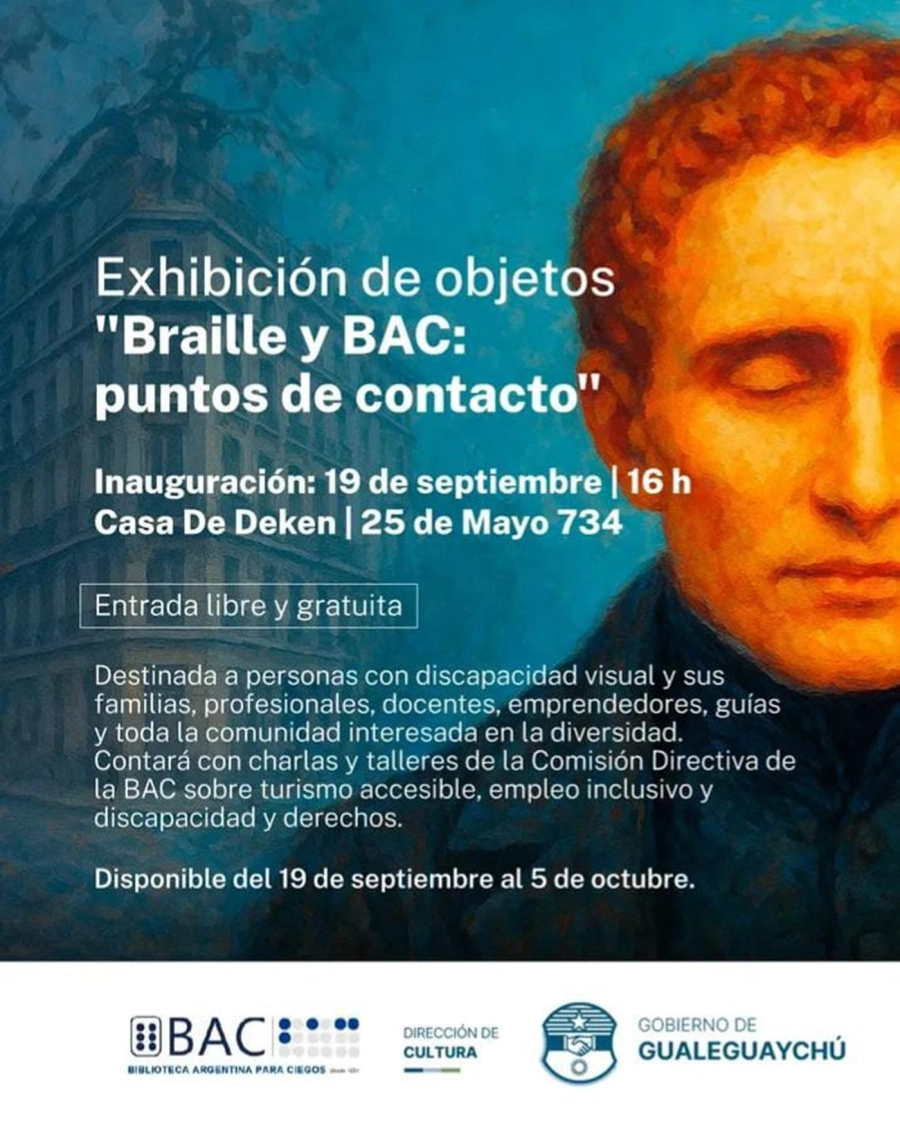 En el marco del Bicentenario del Sistema Braille y el Centenario de la Biblioteca Argentina para Ciegos (BAC), la Casa De Deken abre sus puertas a una muestra única que invita a reflexionar sobre inclusión, accesibilidad y el poder transformador de la lectura. La exposición propone un recorrido histórico y temático con objetos, publicaciones y recursos didácticos que muestran cómo el Braille cambió para siempre la educación, el trabajo y la vida cultural de las personas con discapacidad visual. La muestra estará abierta desde el viernes 19 de septiembre al domingo 5 de octubre. Una invitación abierta a la comunidad para acercarse, conocer y valorar la importancia del Braille como herramienta de autonomía e inclusión.