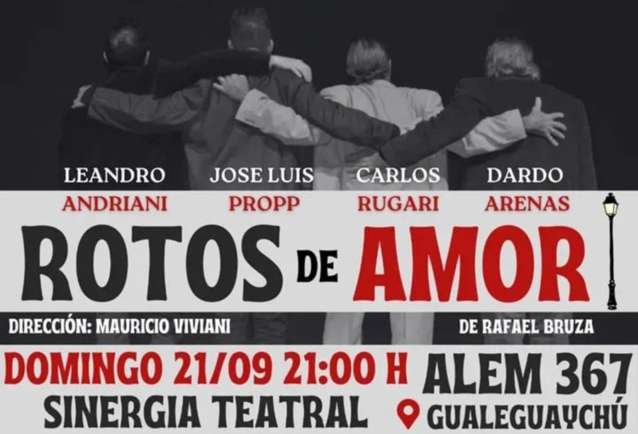 Cuatro hombres, cuatro amigos, cuatro historias de desamor. Toda historia tiene una tristeza. Empieza con una esperanza y termina con algo que muere. Toda historia tiene un sabor desagradable. Uno empieza relamiéndose los labios y termina con dolor de estómago. Toda historia tiene un espanto. Se empieza como jugando y se termina con los ojos fuera de las órbitas. Toda historia tiene un fracaso. Nosotros éramos ese fracaso. El corazón y el tango en carne viva. Club de Caballeros "Rotos de amor". Actúan: Leandro Andriani como Artemio, Carlos Alberto Rugari como Berlanguita, Dardo Enrique Arenas como Rodríguez, Jose Luis Propp como El Mudo. Dirección: Mauricio Viviani.