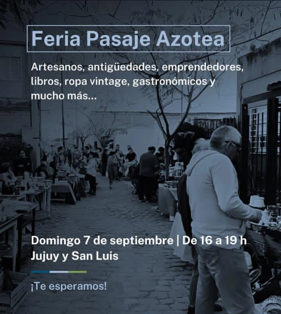 Vení a recorrer la Feria Pasaje Azotea, un encuentro pensado para disfrutar entre cultura, historia y comunidad. Vas a encontrar artesanos, antigüedades, emprendedores, libros, ropa vintage, propuestas gastronómicas y mucho más. Disfrutá de un paseo al aire libre en un espacio histórico.