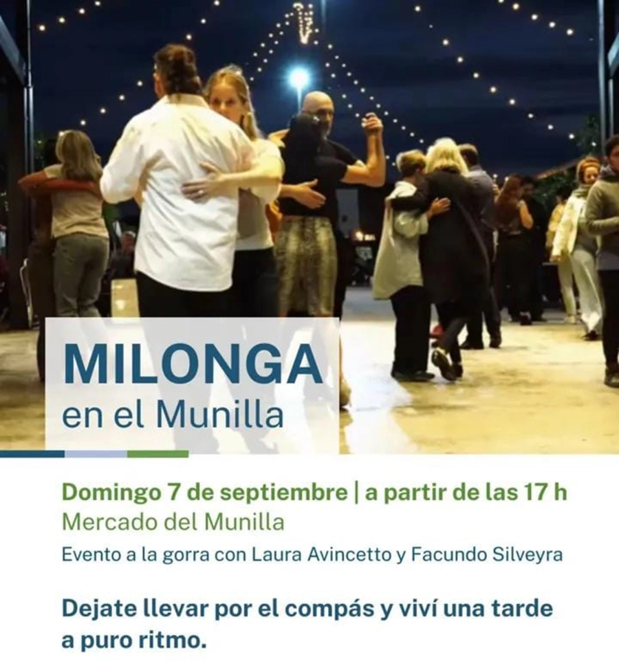 La tarde del domingo se vive a pura milonga en el Mercado del Munilla. Dejate llevar por el compás y viví una tarde a puro ritmo. Evento a la gorra a cargo de Laura Avincetto y Facundo Silveyra.