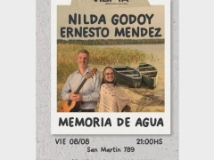 Música en Espacio Vibra: Presentación del disco “Memoria de agua”, que es un trabajo discográfico profundamente arraigado en el paisaje y la cultura del litoral. Conformado por composiciones originales de Juan Manuel Alfaro y Ernesto Méndez (a excepción de una pieza de autoría ajena), este proyecto se inscribe en la tradición musical de la región, aportando nuevas miradas y sensibilidades que dialogan con la memoria, la identidad y la poética del entorno. La presentación del disco contará con Ernesto Méndez en guitarra y Nilda Godoy en voz, quienes ofrecerán además un recorrido por obras de compositores afines como El Zurdo Martínez, Claudio Monterrío, Walter Heinze y otros referentes del repertorio litoraleño. Una invitación a bogar en las aguas de la memoria, donde cada melodía es un cauce que nos conecta con historias, voces y territorios. Poemas: Juan Manuel Alfaro. Música: Ernesto Méndez. Voz: Nilda Godoy A las 21:00 horas en Espacio Cultural Vibra, San Martín 789