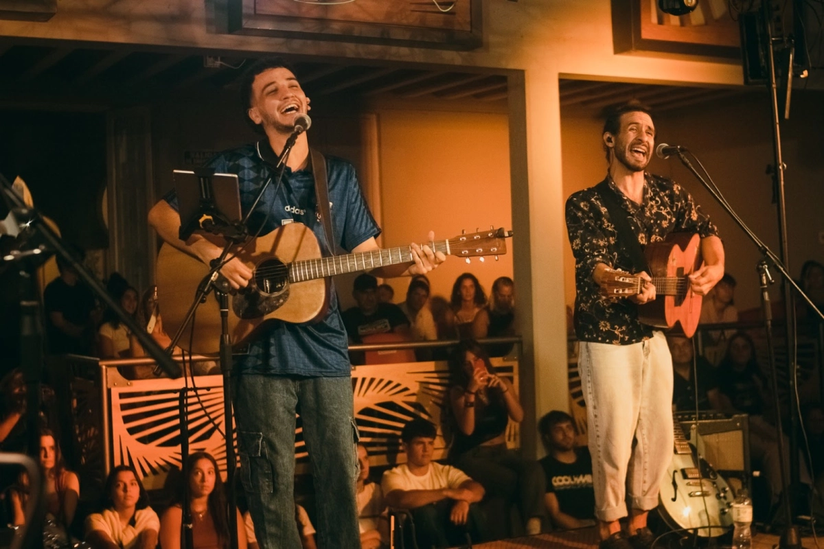 Desde el arranque, el recital mostró que se trataba de una apuesta distinta. El escenario se ubicó en el centro del salón, lo que permitió al público desplazarse libremente alrededor de los músicos y vivir la experiencia desde distintos ángulos. En un momento, el propio Thomás Spagnol invitó a los presentes a acercarse al centro, logrando una comunión íntima con la audiencia.