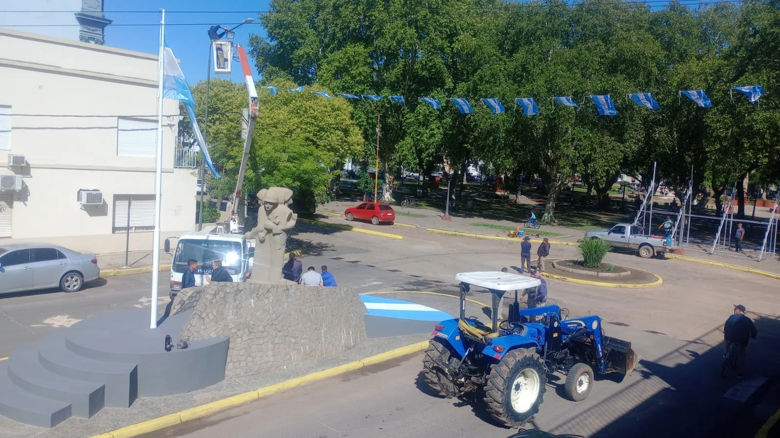 Se ha mejorado la luminaria, se han podado los árboles sobre la plazoleta, se están colocando tribunas sobre la plaza San Martín y se colocan banderas que atraviesan la arteria, en el marco de los festejos que comenzarán esta noche, desde las 20.30, con la vigilia de los ex combatientes.