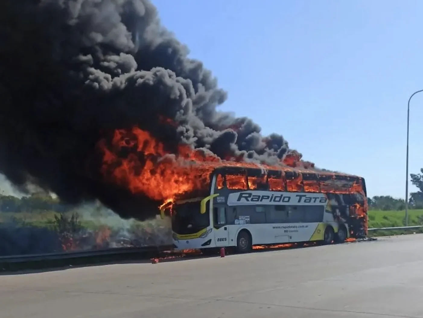 Afortunadamente quienes iban en la unidad, lograron bajar antes de que las llamas se propagaran afectando la totalidad del micro, observándose una densa columna de humo desde gran distancia.