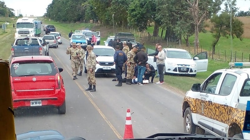 Frente a la Brigada de Delitos Rurales, “se detuvo camiones sobre la ruta para evitar que este auto que iba a gran velocidad cruzara por el lugar”. Ahí “se baja al conductor que fue reducido y luego, con la orden del fiscal, se requisó el vehículo y se secuestraron 5.300.000 pesos en dinero de distintas denominaciones y un teléfono celular”.