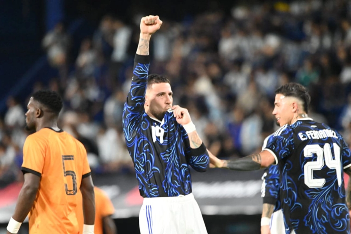 Julián Álvarez inició la cuenta con un pase gol del 10 a los tres minutos de juego. Sobre el final del primer tiempo, la Pulga recibió un pase de la Araña, se desmarcó de un rival y construyó una pared con Alexis Mac Allister para convertir el 2-0. Ya en el complemento, Otamendi se hizo cargo de una pena máxima provocada por una falta a Thiago Almada en el área, Chanda anotó el 4-0 y Valentín Barco le bajó la persiana al resultado en la última jugada del encuentro.