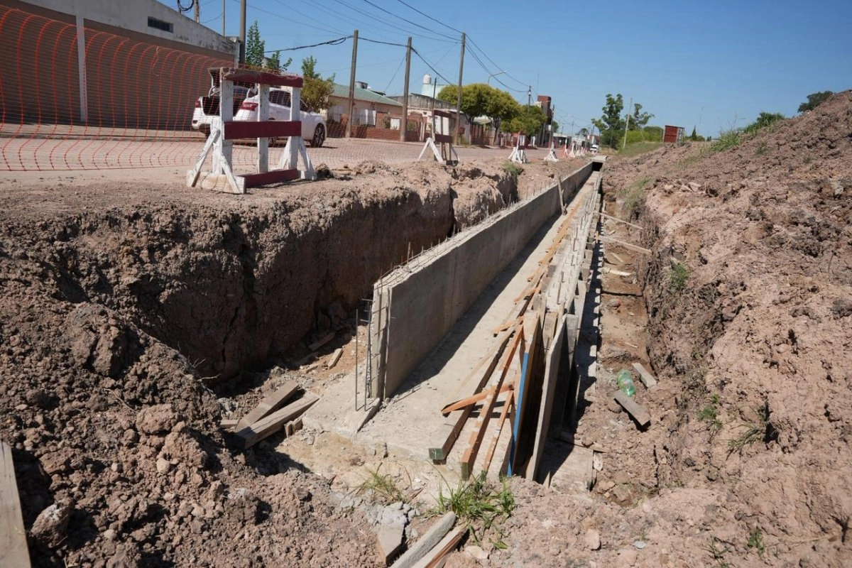 Además, una vez finalizada la construcción del canal principal, se ejecutarán cámaras de captación, cordones cuneta y badenes de hormigón para completar el perfil vial y garantizar el escurrimiento superficial durante las lluvias.