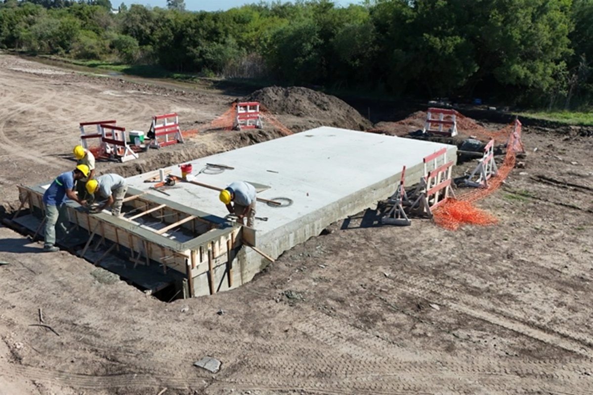 La cámara hidráulica, diseñada con dimensiones capaces de recibir caudales significativos provenientes del sector del barrio San Isidro y zonas aledañas, avanza hacia su conformación definitiva con una lógica constructiva que prioriza resistencia, durabilidad y capacidad operativa.