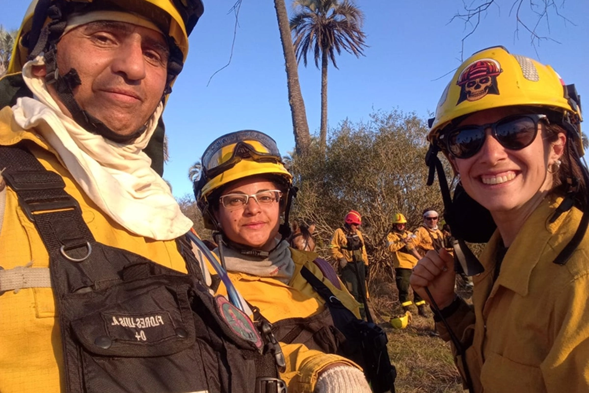 Los brigadistas forestales Luis Flores, Johana Cedrés, Daniela Barrios y Jonathan Dumusset fueron los cuatro representantes de Gualeguaychú que el jueves se capacitaron en el Parque Nacional El Palmar con prácticas de quema controlada.