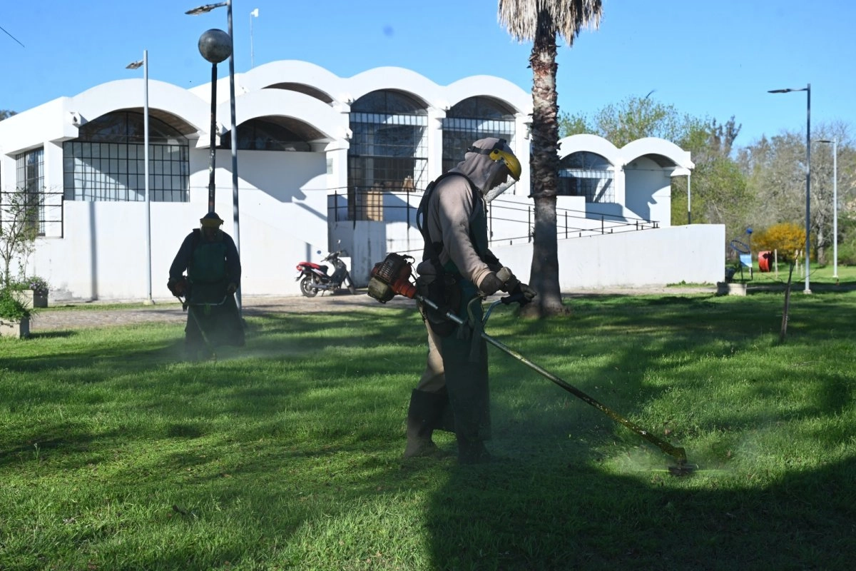 En simultáneo, se avanzó con trabajos en el predio de los Empleados de Comercio, donde se pintaron canteros, se plantaron flores, se repararon mesas y bancos de madera, se cortó el pasto, se podaron ramas bajas y se instalaron empalizadas para delimitar zonas específicas.