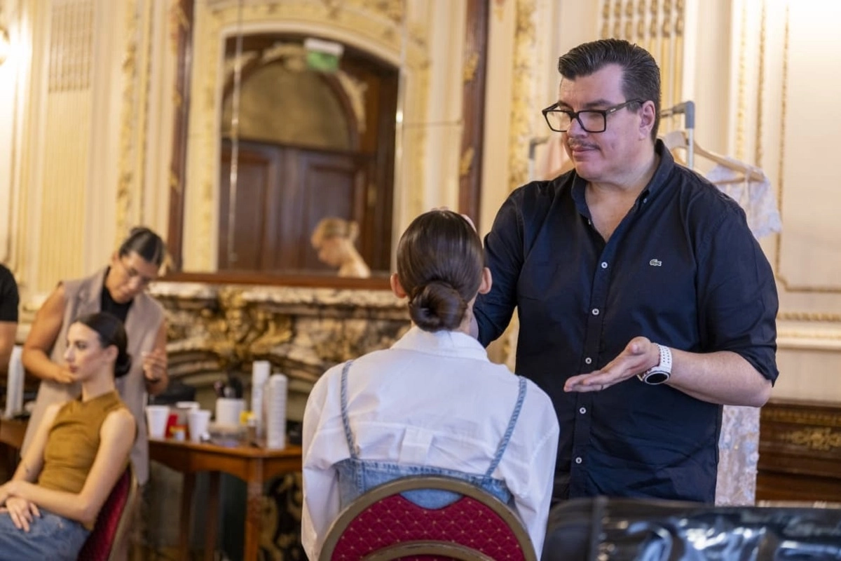 Aunque su oficio suele ser individual, Larrivey valora la labor colectiva. “El trabajo del maquillador es muy personal. Yo tengo mi estudio donde doy clases y, cuando hago servicios de maquillaje social, es un trabajo solitario. Pero cuando surgen producciones o desfiles, como en Margarita, convoco a gente que se formó conmigo y con quienes trabajó, en algunos casos desde hace años. Comencé a dar clases en 2004 en Buenos Aires y ya llevo más de 22 años en la docencia del maquillaje. Hay personas que se formaron conmigo hace más de 20 años y aún hoy trabajan a mi lado. No tengo empleados, pero cada vez que puedo convocar exalumnos lo hago, y me encanta. Por suerte tengo una especie de fandom de maquilladores y colegas que me siguen a todos lados, y eso lo celebro, porque es difícil generar equipos de trabajo y yo tengo muy buenos equipos”.