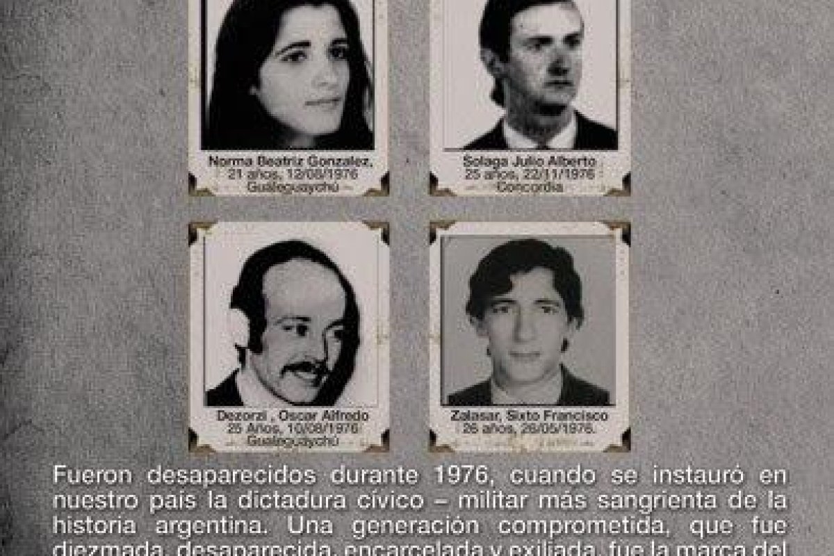 Los gualeguaychuenses detenidos sumaron decenas, los desaparecidos son 36. Solo dos de ellos fueron levantados en la ciudad y jamás aparecieron: Norma Beatriz González y Oscar Alfredo Dezorzi. Noni y el Ruso.