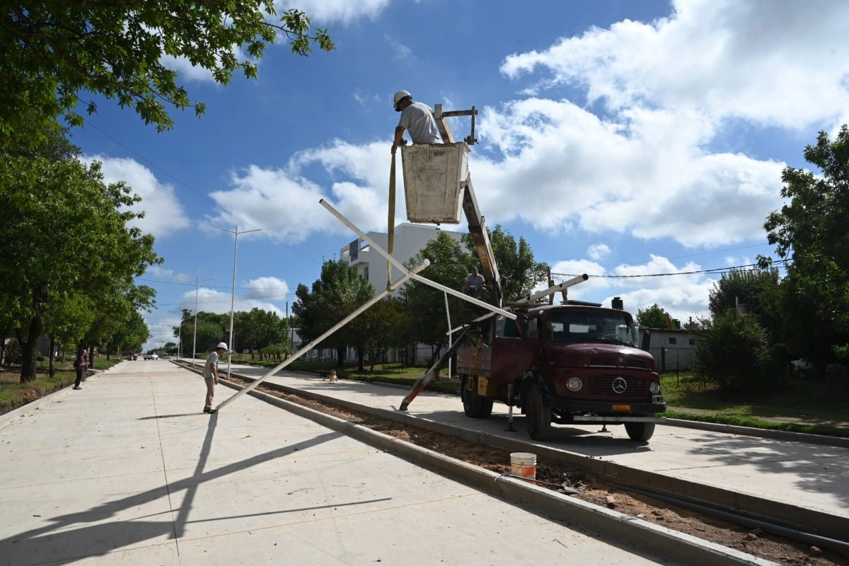 La Dirección de Energía municipal instaló siete de las ocho estructuras de alumbrado público en los canteros centrales del sector intervenido del boulevard Martínez, en el tramo que conecta Urquiza al Oeste con Gervasio Méndez, una extensión cercana a los 250 metros lineales.
