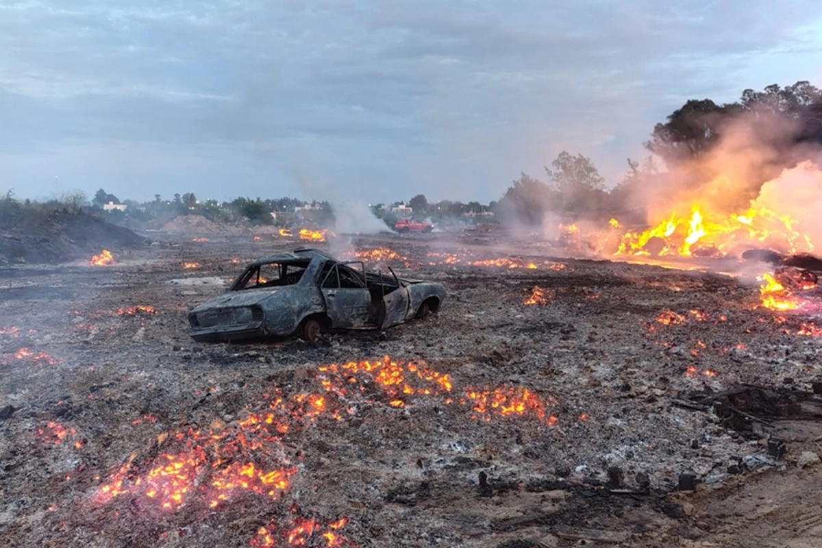 Para minutos antes de las 8, se informó que las unidades 38, 26 y 29 de los Bomberos Voluntarios seguían trabajando en la extinción final del incendio, asistidas en la recarga de agua por las cisternas y se sumó al procedimiento una pala retroexcavadora de la Dirección de Obras Públicas para colaborar en las tareas de remoción y extinción de los últimos focos ígneos.