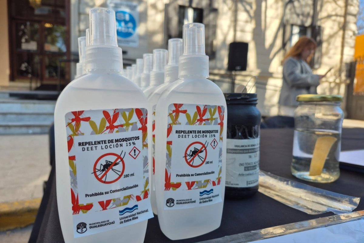 También, se resaltó que, en el marco de un trabajo conjunto con la Facultad de Bromatología de la UNER, se produce repelente de elaboración local que es distribuido de manera gratuita a las familias durante las visitas domiciliarias de los equipos de salud, y que también está disponible en los CAPS y CIC de la ciudad.