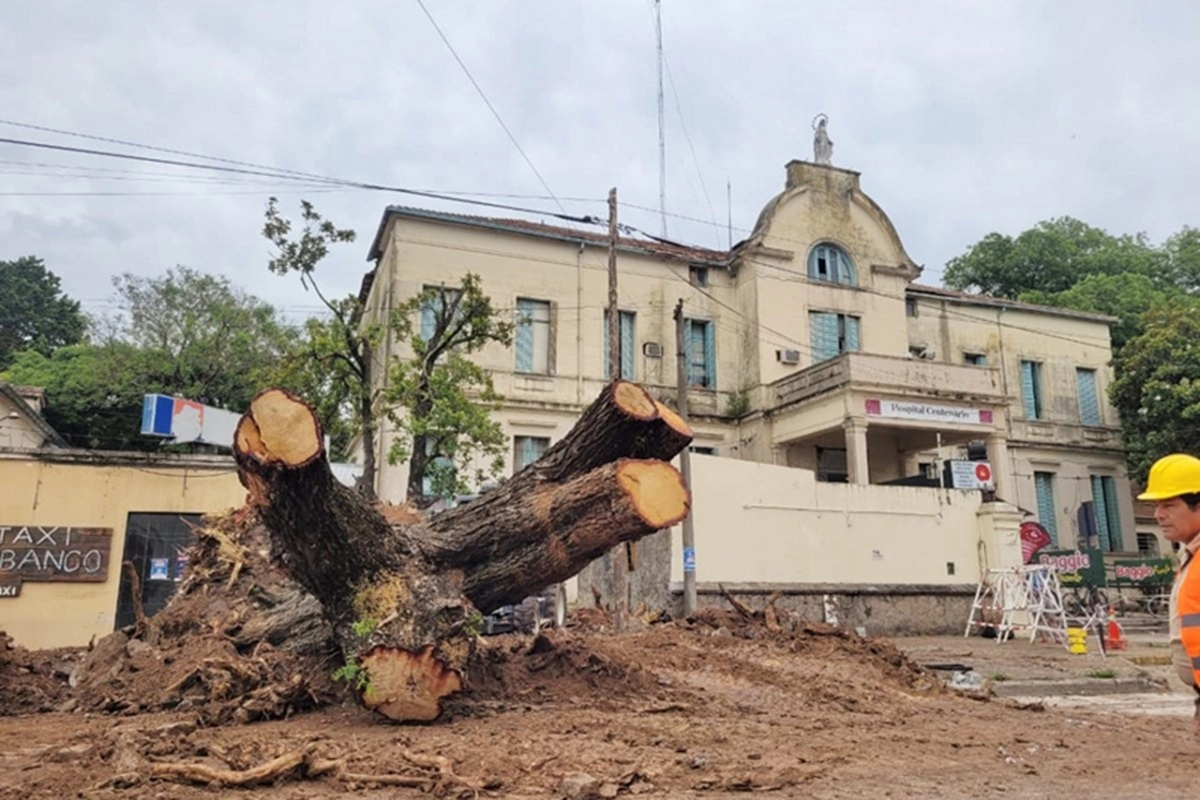 Se concretó la remoción de un ejemplar Tipa de gran porte ubicado en el acceso al Hospital Centenario, tras un extenso proceso de evaluación técnica que confirmó un riesgo estructural creciente para la comunidad y el entorno edilicio.
