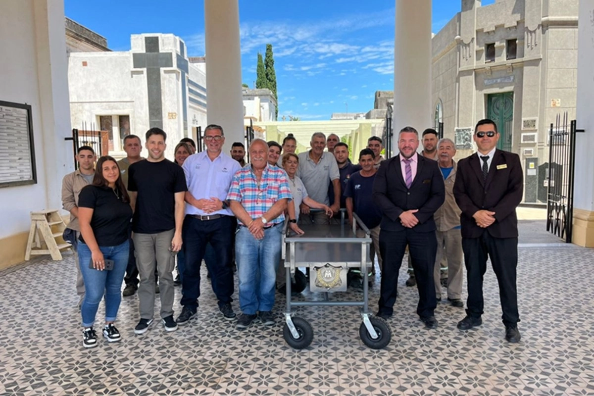 La entidad privada donó una cureña al equipamiento que tiene la sala pública y gratuita. Servirá para brindar un mejor servicio y funcionamiento interno en la logística que el Estado pone a disposición para aquellas personas que no pueden afrontar un sepelio oneroso.
