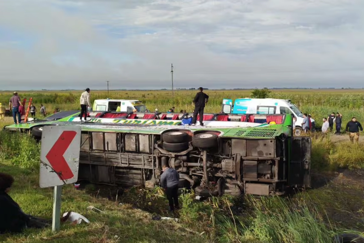 Un micro volcó en la ruta 2: reportaron al menos dos muertos y varios heridos