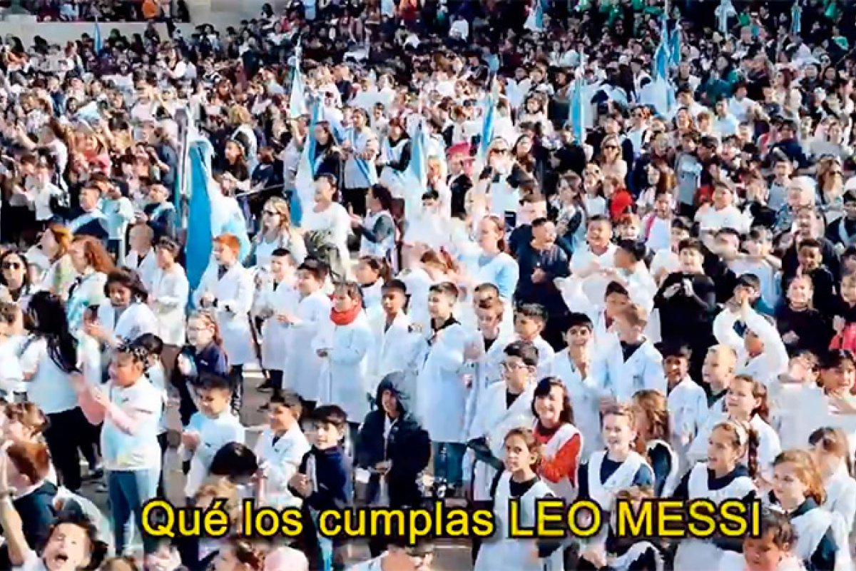 Seis mil chicos le cantaron el feliz cumpleaños a Lionel Messi en el Monumento Nacional a la Bandera. Este 24 de junio el capitán de la selección argentina cumple 37 años.