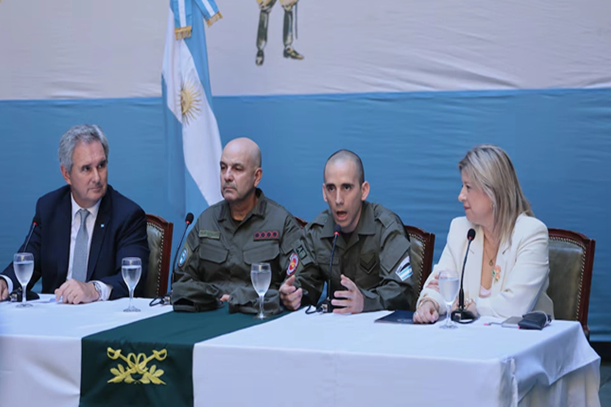 Sobre el final de la declaración a la prensa, sin preguntas habilitadas, el gendarme agradeció a las instituciones, organismos internacionales y al Estado. “No voy a dar nombres, solamente digo: a toda la Nación Argentina”, cerró. Lo antecedieron en la palabra el jefe de Gendarmería, Claudio Miguel Brilloni; el canciller, Pablo Quirno; y la ministra de Seguridad, Alejandra Monteoliva, que fue la encargada de abrir la conferencia.