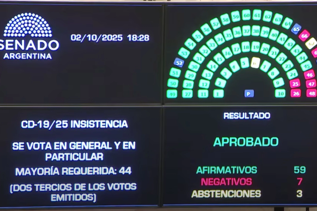 En tanto, la iniciativa relacionada con universidades consiguió 58 adhesiones, siete rechazos y las mismas tres abstenciones del Pro, más la radical Carolina Losada. Es decir, ambos textos lograron -bajo la mirada de la vicepresidenta y titular de la Cámara alta, Victoria Villarruel-, por amplio margen, los dos tercios que requieren las leyes para ser insistidas por el Congreso.