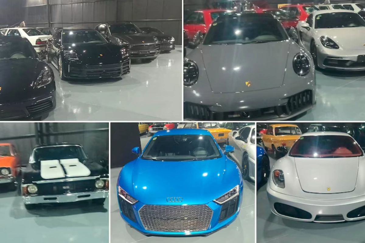 Entre los autos encontrados, hay varios Porsche, un Audi, un BMW, motos Harley Davidson y una Ferrari F430 coupe. Otros vehículos de colección fueron identificados con su número de patente y los investigadores aún estaban intentando establecer qué modelos eran.