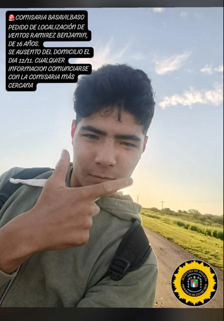 Se trata de Benjamín Ventos Ramírez, un joven de 16 años que se fue de su casa en Basavilbaso y desde el miércoles no se sabe nada de él. Creen que podría estar en Gualeguaychú.