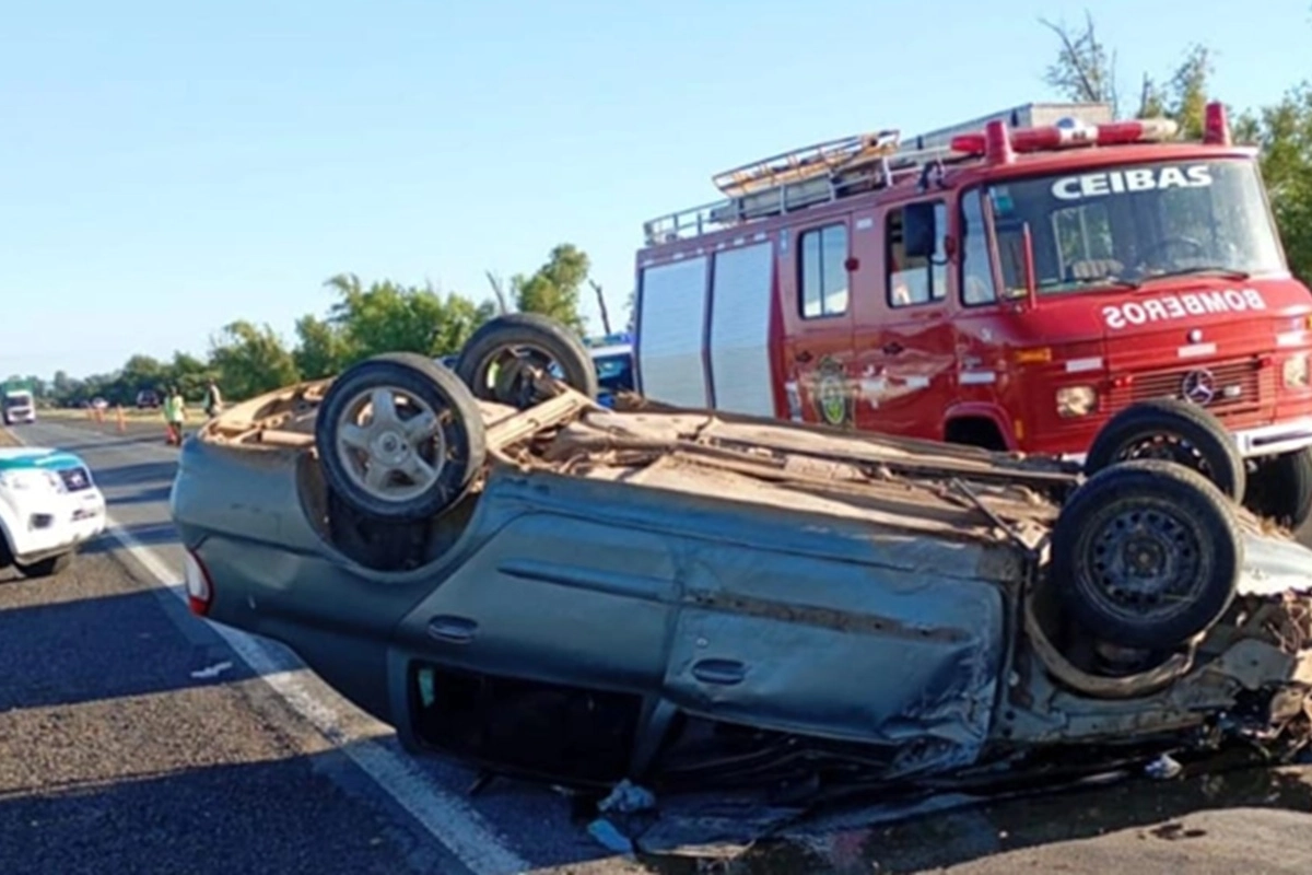 Los cinco ocupantes del rodado, oriundos de la localidad de Ceibas, viajaban en sentido norte a bordo de un automóvil Renault Clío, pero al llegar al kilómetro 158 de la Ruta Nacional 12, el conductor perdió el control del rodado y tras ello protagonizaron un vuelco.