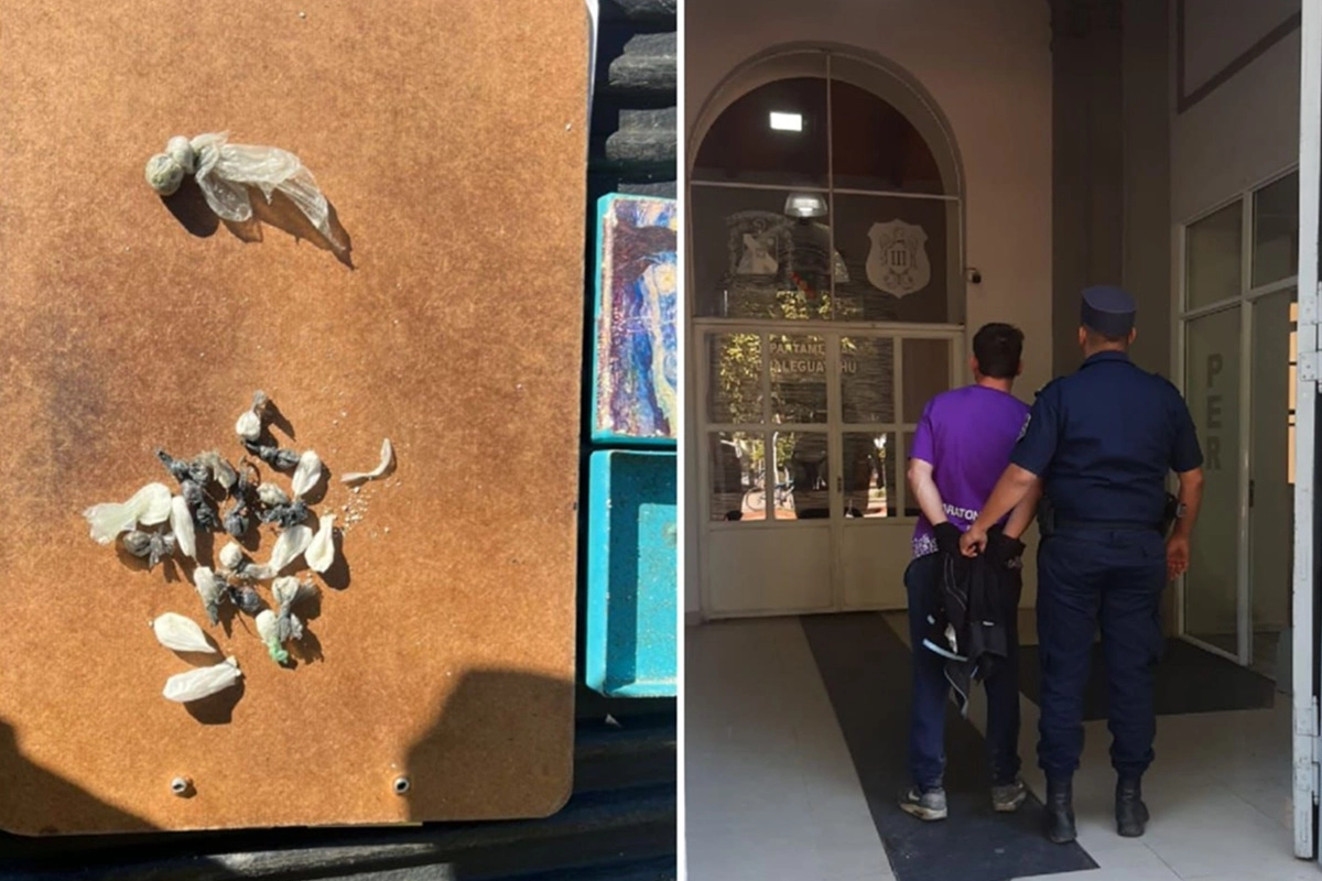 Durante la requisa, los agentes detectaron un bulto sospechoso en el pantalón del aprehendido. Fue el propio joven quien, de manera voluntaria, exhibió el contenido: se trataba de 24 envoltorios de nylon con una sustancia blanca, presuntamente cocaína.