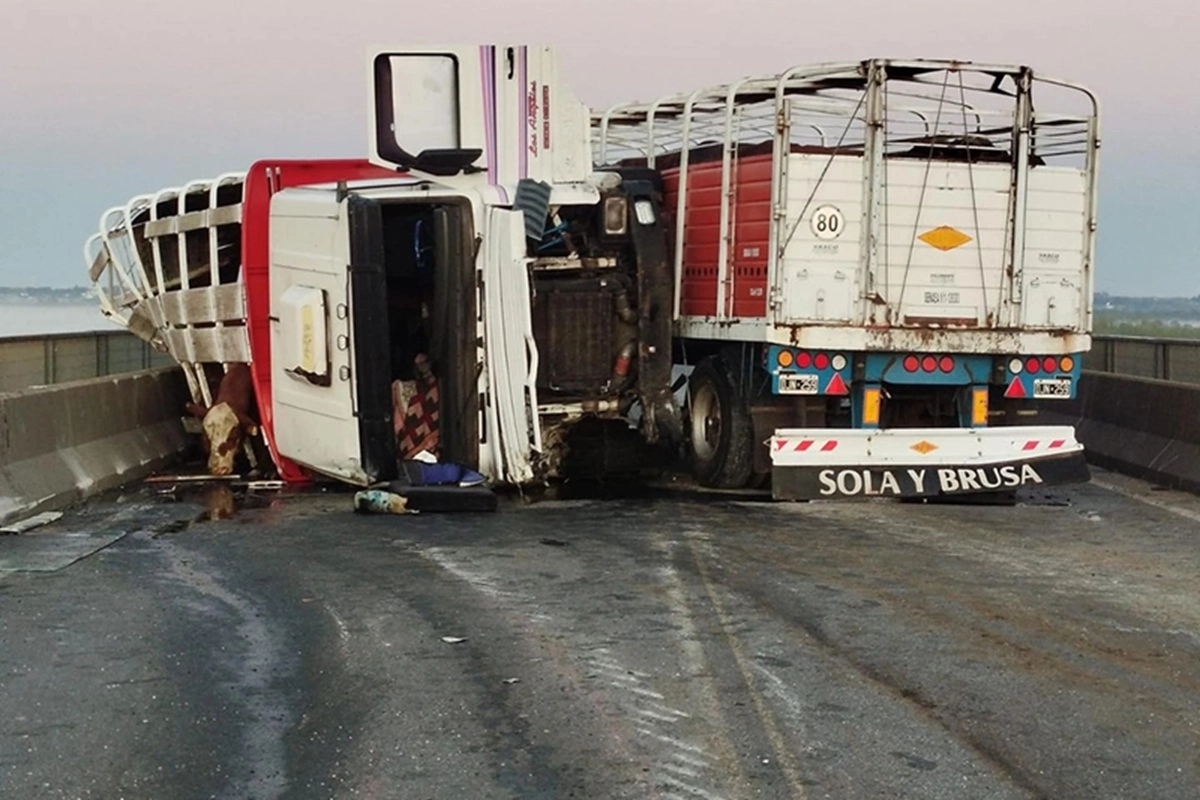 Accidente con un camión de ganado. En la madrugada de este jueves, cerca de las 2, se registró un fuerte siniestro vial en el kilómetro 7 de la Ruta Nacional 174, a la altura del peaje del puente Victoria - Rosario, con el saldo de varios heridos.