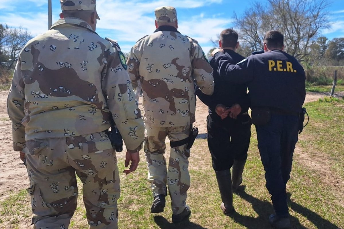 [{adj:84496 ]Finalmente, los móviles policiales lograron interceptar la camioneta, pero el conductor emprendió la fuga a pie. El hombre se adentró en un campo situado en el kilómetro 181 de la Ruta Nacional 12, y tras ingresar al casco de la estancia y dirigirse hacia una zona de monte tupido, los efectivos policiales le dieron la voz de alto, pero este hizo caso omiso.
