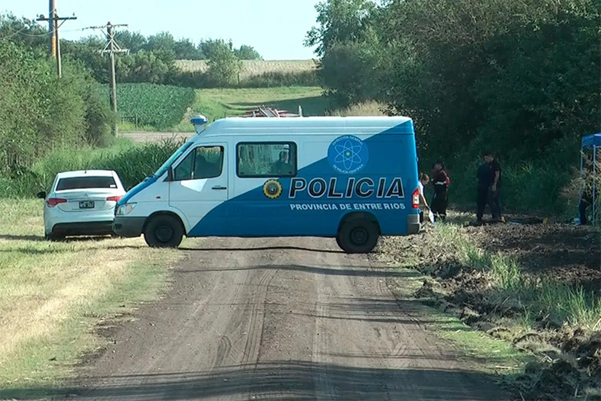 La víctima sería de apellido Emeri, de 25 años, hijo de un policía retirado y domiciliado en el casco urbano de Cerrito. El cadáver fue hallado dentro de un Ford Fiesta que apareció totalmente quemado en un camino vecinal ubicado en inmediaciones del cruce de las rutas nacionales 12 y provincial 8, en dirección hacia Curtiembre.