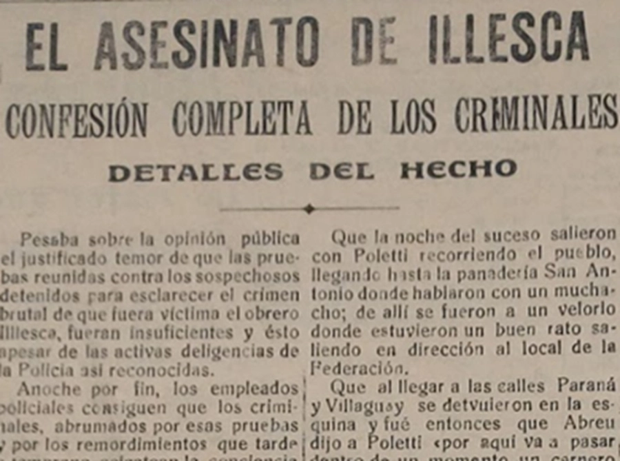 Según se informó en El Censor, Abreu relató que desde hace mucho tiempo tenía decidido matar a Illiesca, a quien nunca habían podido quebrantar su resistente negativa a federarse. La noche del crimen salieron con Poletti, recorrieron el pueblo, llegando hasta la panadería San Antonio, donde hablaron con un muchacho. De allí se fueron a un velorio donde estuvieron un buen rato y se fueron en dirección al local de la Federación Obrera. Al llegar a las calles Paraná y Villaguay se detuvieron en la esquina y fue entonces que Abreu le dijo a Poletti: “por aquí va a pasar dentro de un momento un carnero al que vamos a matar”. Al poco tiempo apareció Illiesca y al subir a la vereda, como a un metro de distancia y sin decir palabra, le hicieron fuego simultáneamente.