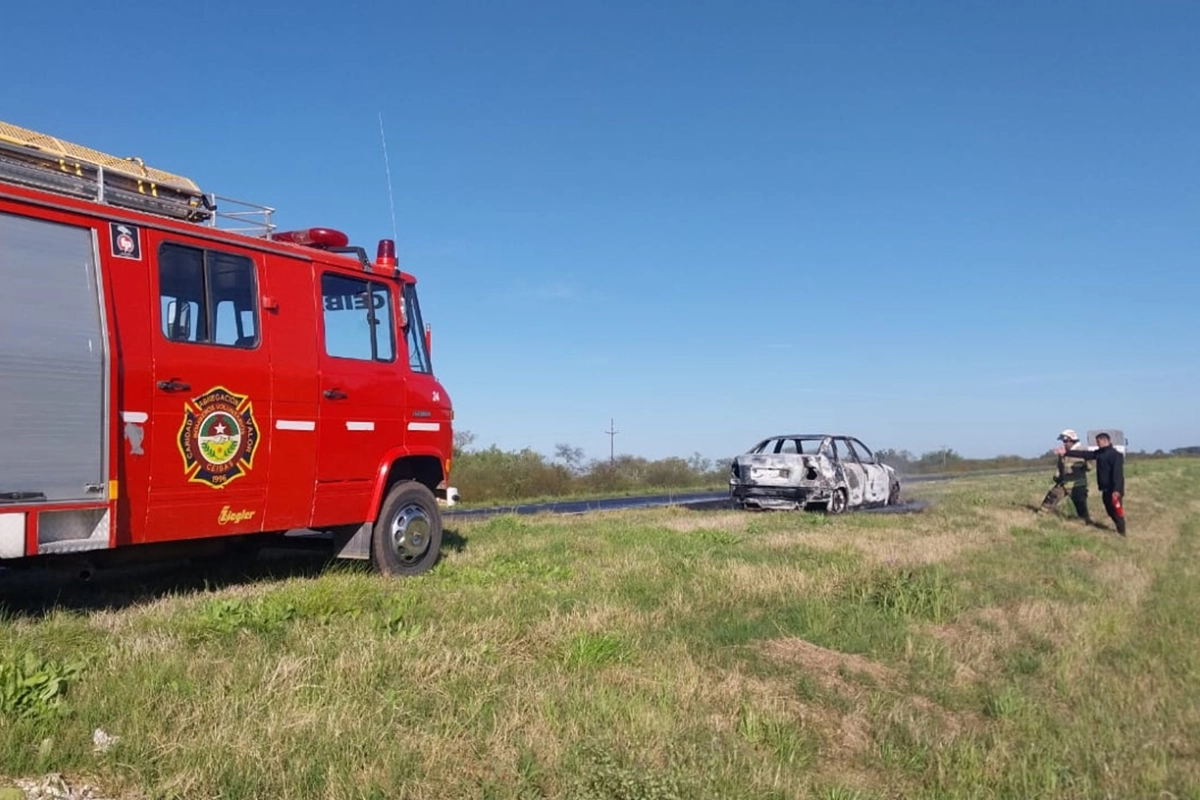 En la mañana de este viernes, un automóvil se incendió por completo en la Ruta Nacional N°12, a la altura del kilómetro 173, en la zona de Sauce. El siniestro ocurrió alrededor de las 8:30 y demandó la intervención de Bomberos Voluntarios de Ceibas.