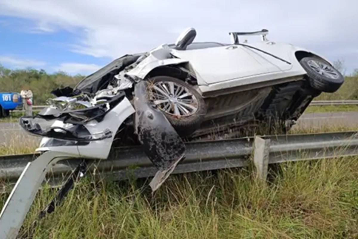 Por razones a establecer, la conductora perdió el control de la unidad despistando hacia el cantero central, quedando el automóvil literalmente montado sobre el guardarraíl.