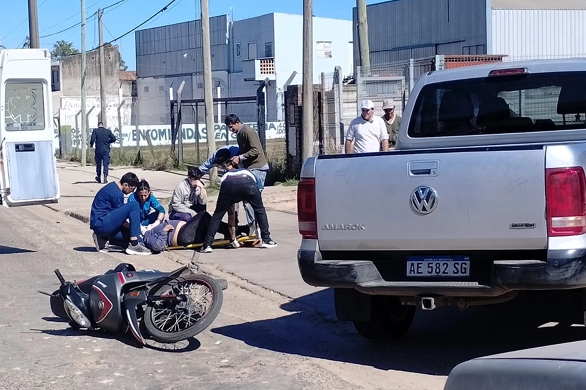 La camioneta era conducida por un joven de 22 años, mientras que en la moto transitaba una mujer de 44 años, que tras el impacto sufrió una fractura expuesta en uno de sus dedos de la mano izquierda.