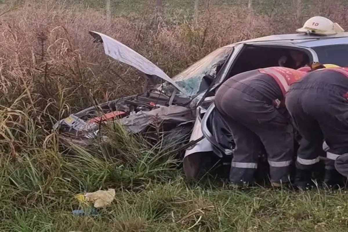 Como consecuencia del impacto, el conductor del automóvil quedó atrapado en el interior del rodado, debiendo intervenir personal de Bomberos Voluntarios local para su rescate.