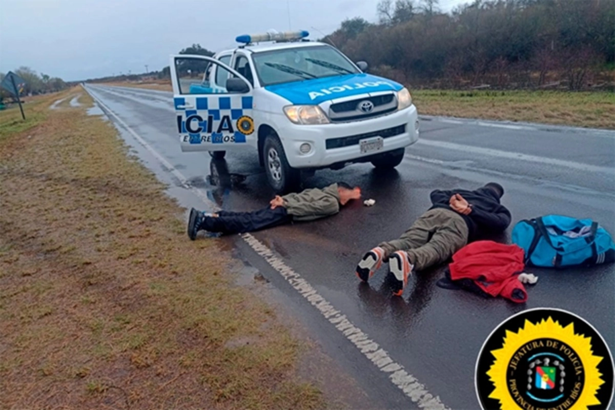 Personal policial del Puesto de Control Vial Paso Telégrafo intervino el martes por la mañana en un hecho registrado sobre el kilómetro 630 de la Ruta Nacional 12, en el departamento La Paz, donde encontraron un vehículo volcado. En el lugar observaron a dos hombres que intentaban darse a la fuga, pero fueron interceptados.