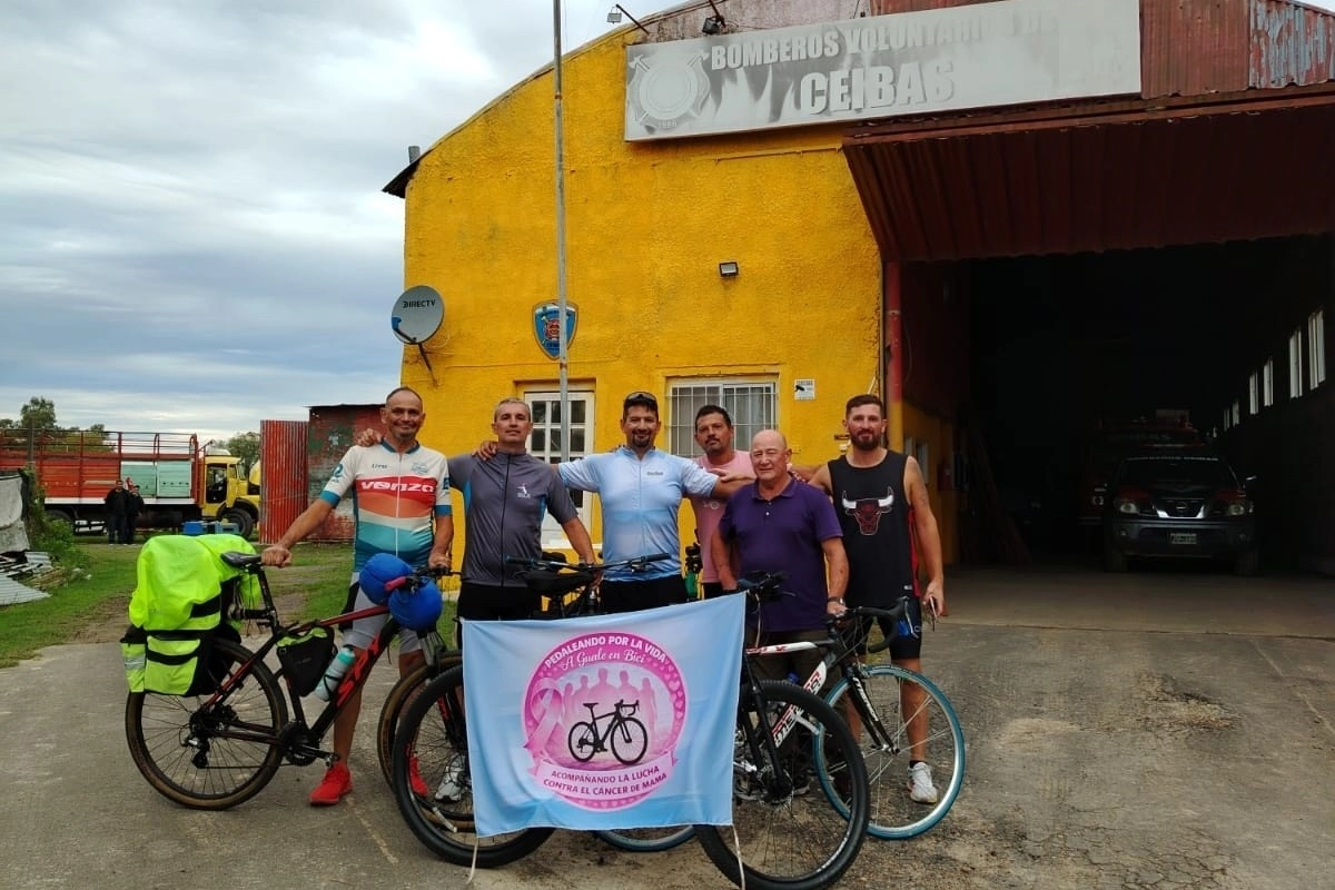 Los hermanos González, oriundos de Gualeguay, emprendieron una pedaleada solidaria desde Buenos Aires con destino a su ciudad natal. El objetivo es claro: generar conciencia sobre la importancia de la prevención y el tratamiento del cáncer de mama. Este sábado completaron la primera etapa al arribar a Ceibas, donde pasarán la noche en el cuartel de Bomberos antes de continuar con el tramo final hacia Gualeguay.