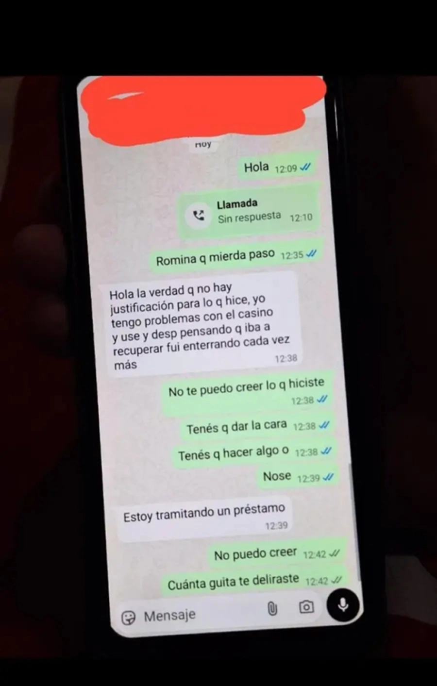La furia de los alumnos y padres se intensificó cuando se supo que Romina E., después de la reunión informativa, no dio la cara y salió del grupo de comunicación. La indignación aumentó cuando se conoció un mensaje en el que la mujer señalada habría reconocido problemas de ludopatía y que al dinero habría sido gastado en el casino como explicación de lo ocurrido.