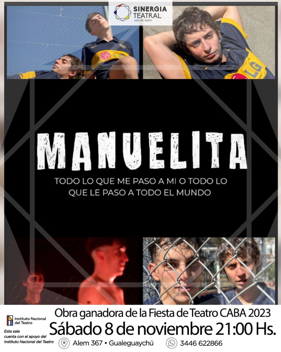 Una cancha de fútbol. Un silbato indica el inicio de una carrera: Manuelita empieza a trotar. La obra es el relato de un adolescente que lucha con sus propios pensamientos e ideas, desarmando esquemas ajenos y escupiendo intenciones intrusas. Es un relato humano sobre la amistad, el amor y la masculinidad. El espectador contemplará los sueños del chico que se descubre homosexual, la humedad de los vestuarios de la escuela, la cancha de fútbol y los recuerdos de la infancia de un pibe, que debe esconder su diferencia, pero también se encontrará con toda la fiesta de la juventud y su ternura.