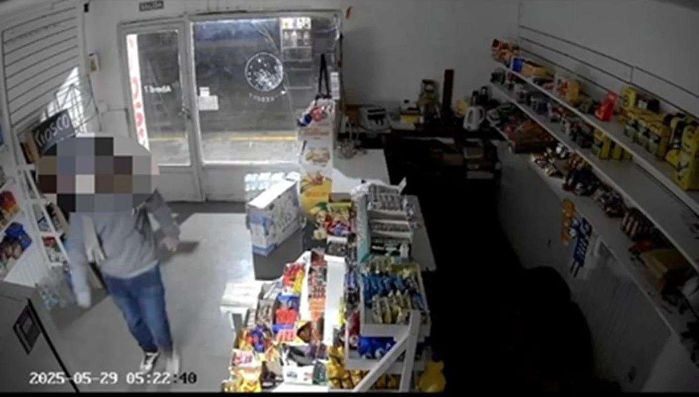 Entre la noche del miércoles y la madrugada del jueves, un delincuente quedó grabado en las cámaras de seguridad de un kiosco situado en Alberdi 7, de donde se llevó una notebook luego de haber roto la vidriera. Fue la Policía la que, en la mañana del jueves, al pasar por el frente del local, observó el vidrio roto y se puso en contacto con el propietario del comercio para darle la mala noticia.