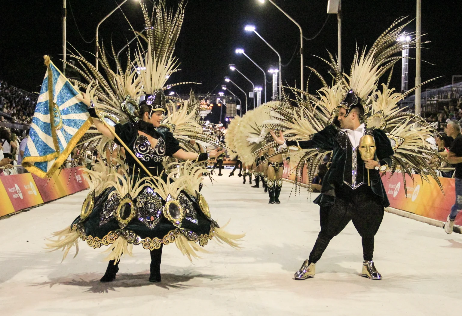 Las primeras escuadras van desde elfos a faunos, hadas, centauros y minotauros. Cada uno afectado a un oficio distinto, explotando sus características físicas. Detrás, los sigue el baile de máscaras, que con gran belleza presenta a los portabanderas Lorena Sánchez Betancourt y Lucas Shapiro: el lujo de los vestuarios es digno de quienes llevan la insignia de la comparsa, que, además, logran desfilar con gracia y delicadeza.