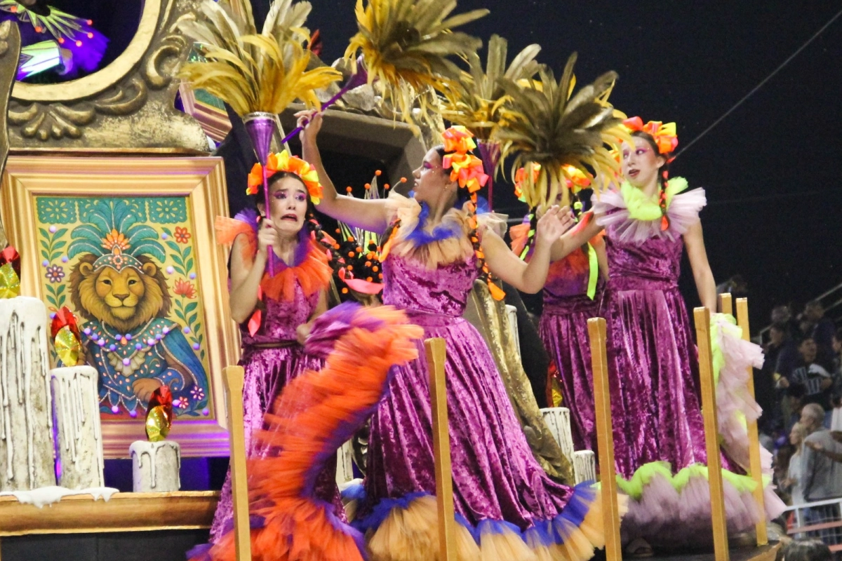 El carro de cierre escenifica el final de la historia donde las protagonistas se reúnen combinando realidad y fantasía entre candelabros y flores. En este punto, Villagra es muy hábil para poner en escena las partes fundamentales de la historia, con una intención narrativa que se cumple en todos los aspectos, desde lo estético, hasta el impacto visual logrado por colores, texturas y detalles.