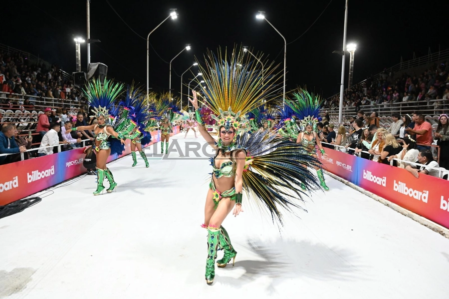 Gran noche para Papelito que tuvo un desfile prolijo, enérgico y con buena respuesta del público que a pesar del frío se mantuvo atento al paso de la comparsa.