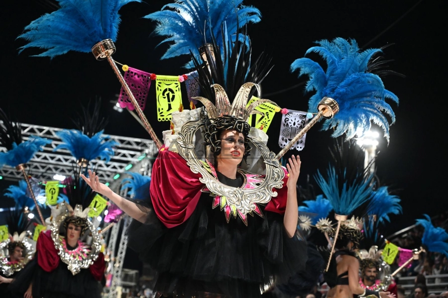 A las 23:00 horas, una hora después de lo que se había anunciado, comenzó a sonar la música de Furia del Oeste, la banda encargada de ejecutar las melodías de la comparsa del Oeste. Papelitos presenta "Vivos", bajo la dirección de Juane Villagra, el director tetracampeón que en esta edición contabiliza su séptima temporada al frente de la dirección artística. Esta historia nos presenta a Celeste, una costurera anónima del carnaval, la cual la noche anterior al gran desfile se ve envuelta por la magia de su máquina de coser que acaba de cobrar vida.